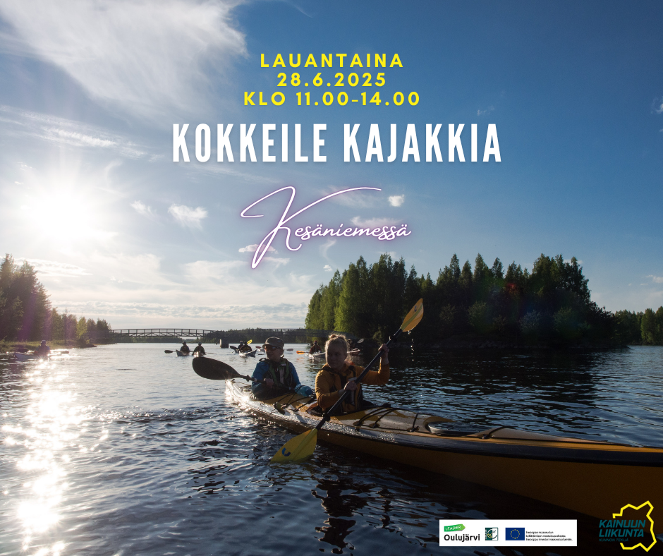 Tervetuloa kokkeilemmaan kajakkimelontaa ja SUP-lautailua karnevaalitunnelmissa Kajaanin Kesäniemeen lauantaina 28.6.2025 klo 11.00–14.00! Iloisen kesäpäivän aikana pääset tutustumaan melonnan perusteisiin ja välineisiin maalla ja vedessä. Lisäksi rannalla on musiikkia ja pientä syötävää. Tapahtuma on avoin ja maksuton kaikille, joten lämpimästi tervetuloa yksin tai ystävän kanssa, juuri sellaisena kuin olet! Tapahtumalla on säävaraus.