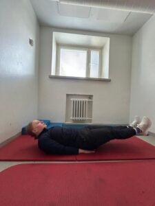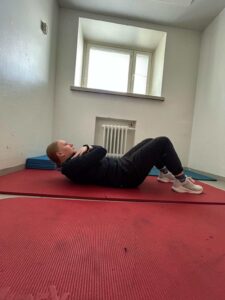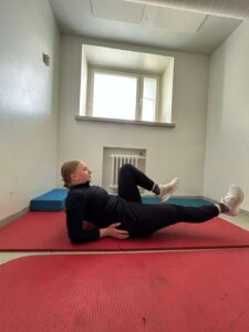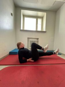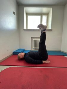 Suoritusohjeet: Pidä selkä liikkeen ajan lattiassa kiinni. Nosta jalat maasta ylös ja laske lähelle maata. Voit myös nostaessasi jalkoja ylös nostaa lantion ylös rutistaen vatsalihaksia. Voit myös viedä jalkoja puolelta toiselle tai liikuttaa yhtä jalkaa kerrallaan. Muista hakea käsillesi hyvä ja tukeva asento liikkeen suorittamiseen.