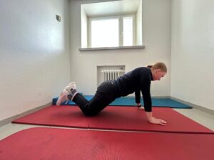 Suoritusohjeet: Kuvittele polkevasi pyörää maatessasi selälläsi. Nosta yläselkä kevyesti käsien varaan ja polje jaloillasi kuvitteellista pyörää. Haastetta saat polkemalla lähempänä lattiaa ja keventämällä käsillesi tulevaa painoa selästäsi.