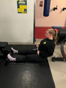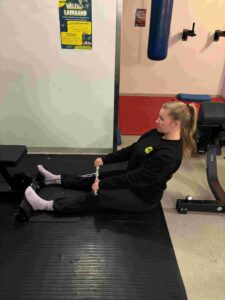 Suoritusohjeet: Istu lattialla jalat suorana ja ota tangosta kiinni hartioiden levyisellä otteella. Lähde vetämään tankoa kohti napaa pitäen keskivartalo aktivoituna koko liikkeen ajan. Palauta liike takaisin lähtöasentoon hallitusti.