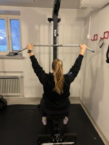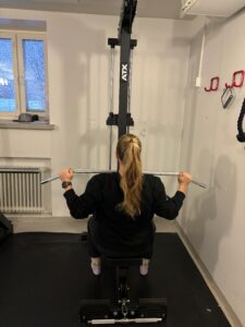 Suoritusohje: Asetu istumaan ja ota kapea vastaote tangosta. Pidä selkä suorana, hartiat alhaalla ja rinta pystyssä. Paina ensin olkapäät alas ja lähde vetämään tankoa kohti rinnan yläosaa samalla kallistaen ylävartaloa hieman taaksepäin. Palauta liike takaisin yläasentoon hallitusti.