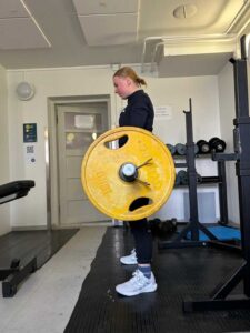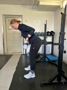Suoritusohjeet: Aseta tanko hartioiden päälle. Vie lantio taakse polvet hieman koukussa. Kallista ylävartaloa alaspäin niin pitkälle kuin pystyt hallitsemaan selän asennon. Ojenna vartalo suoraksi lonkkia ojentaen.