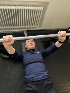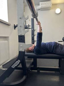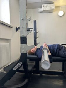 Suoritusohjeet: Asetu selin penkille siten, että silmät ja tanko ovat samassa linjassa. Aseta jalat tukevasti maahan tai penkille ja tartu tankoon hartioita leveämmällä otteella. Nosta tanko suorille käsille ja laske hallitusti alas rintakehän keskiosaan. Työnnä tanko takaisin suorille käsille.